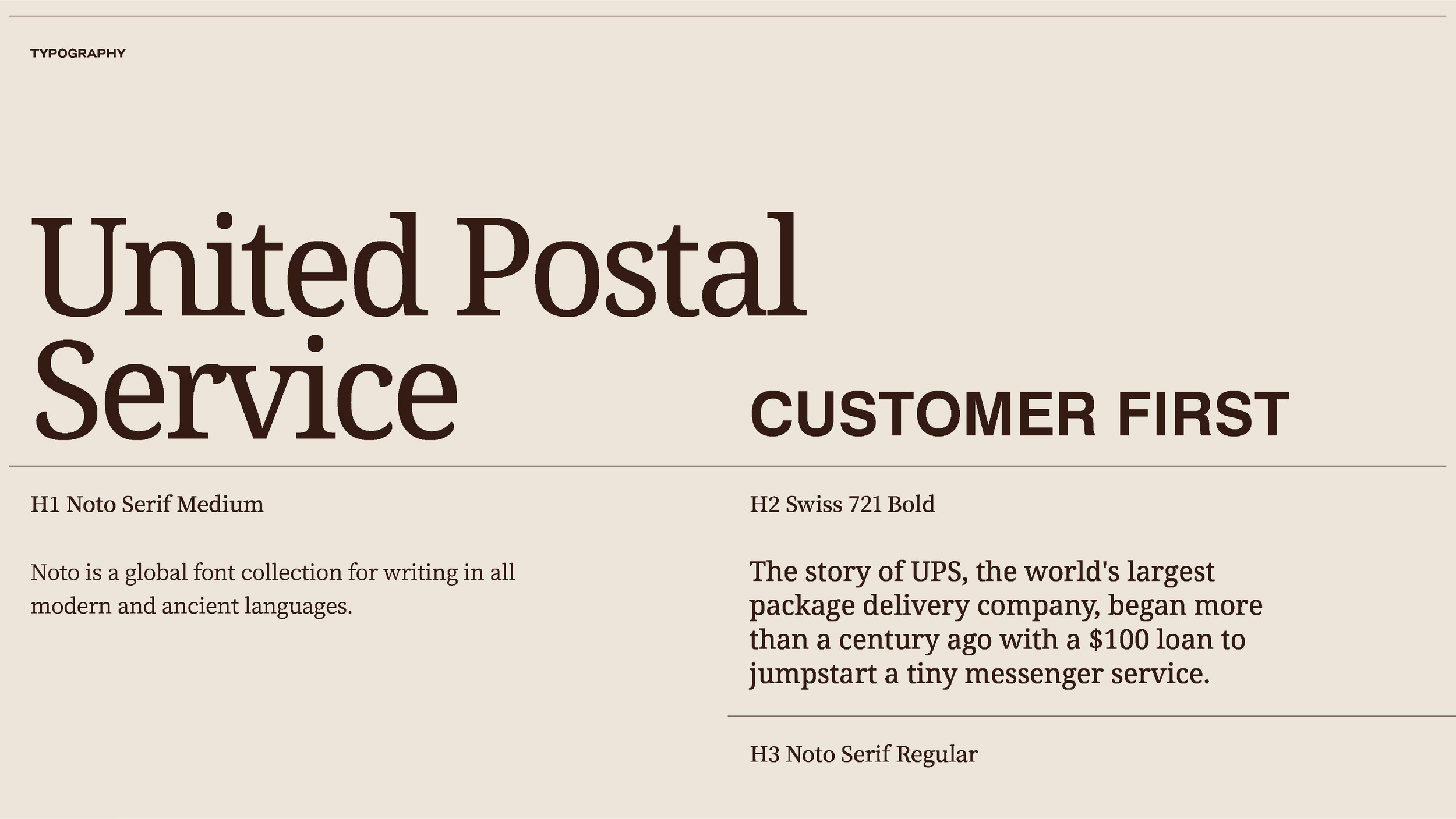 • UPS is innovative, dependable, and friendly, like your neighborhood UPS driver. After crafting a report of the competitive landscape and extensive iteration, I applied a new identity system and presented it to UPS executives.
